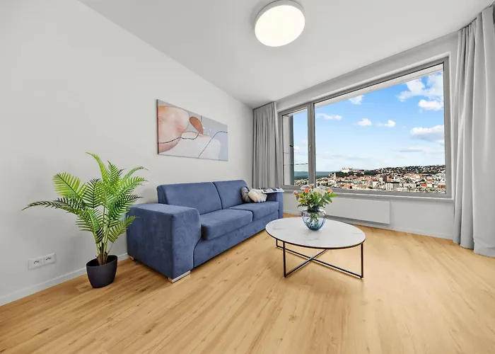 Castle View Apartment In Sky Park By Zaha Hadid Bratislava, di 55 m², si trova nel quartiere Stare Mesto e offre un rapido accesso ad Apollo Bridge, che si trova a soli 5 minuti a piedi. Dotata di sistemazioni con una terrazza, quest'appartamento si trova nel centro della città.